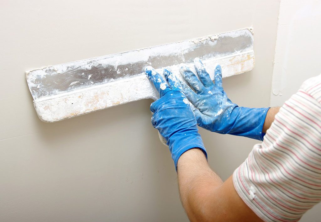 - Используя шпатели разной длины, сгладьте все неровности. Достаточно иметь средний и длинный шпатели. Первым наносится и распределяется раствор, вторым выполняется разравнивание.