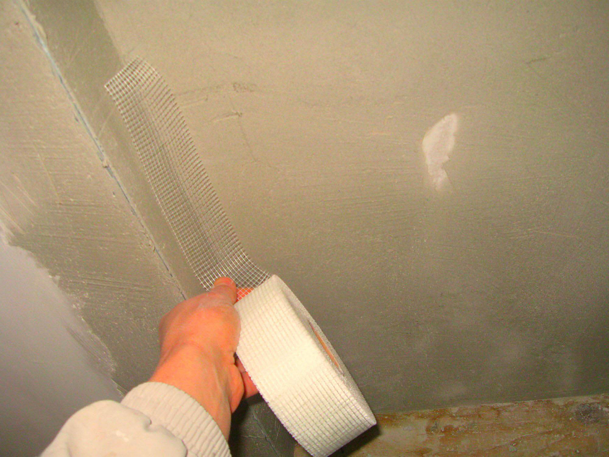 Пока состав не высох, наклейте в угол армирующую ленту, прижимая ее шпателем. Это предотвратит появление трещин. - Выравнивание поверхности.