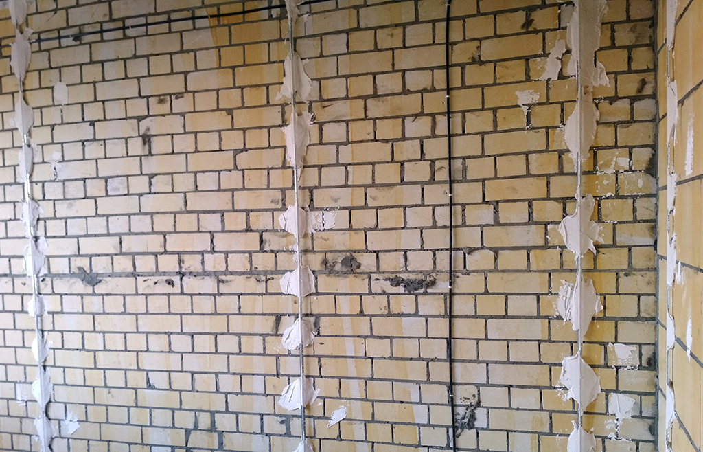 Удалите с поверхности стены все старые покрытия, пыль, грязь и другие препятствия. На стенах не должно быть следов плесени, масла или жира. Если на стенах есть глубокие трещины или неровности, их нужно заделать, чтобы обеспечить ровную поверхность для установки маяков.